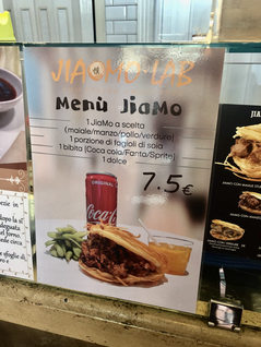 Il protagonista del menù è il jiamo, lo sfiziosissimo panino croccante originario della città cinese di Xi'an. Accanto alla proposta principale si affiancano i ravioli, i bao, i noodles, l'anatra alla pechinese e i filetti di pollo croccante. Adatto per un pasto veloce da consumare sul posto o per il take away.