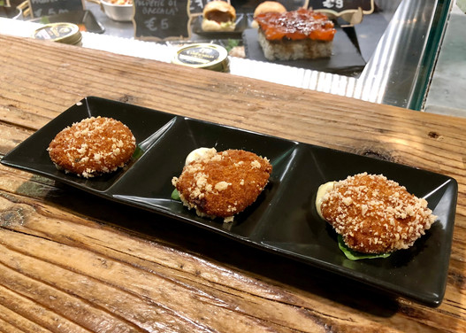 A renderlo un ristorante particolare è innanzitutto la mancanza della classica licenza di ristorazione. Cosa comporta? Che non possono avere menù né servizio. Nel locale, però, troverete esposte molte simpatiche lavagnette in cui sono elencati tutti i piatti proposti. Ce n'è per tutti i gusti: pesce crudo, pesce cotto, tartare, fritti, grigliate miste, taglieri misti, tapas italiane, polpette e panini con pesce. Ogni portata è servita in graziosissimi piattini e presentata sotto forma di finger food, stuzzichini e tapas. Molte sono peraltro già preparate ed esposte nel bancone centrale (tranquilli, si trovano lì solo a livello espositivo, non vengono servite), non solo per darvi modo di avere una precisa idea del piatto ma anche per incuriosirvi e sollecitare l'appetito. Con noi ha funzionato.